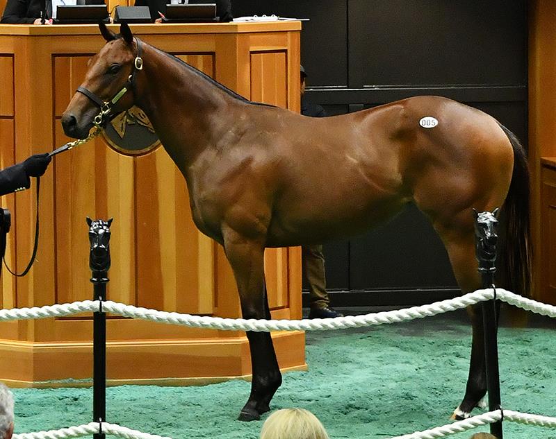 Cataloged as hip No. 5, the bay filly was consigned by St. George Sales, agent. Her dam, Maple Syrple, was a stakes winner in Canada and finished second in the Schuylerville S. (G2). She has produced the stakes winners Golden Century and Maple Forest.