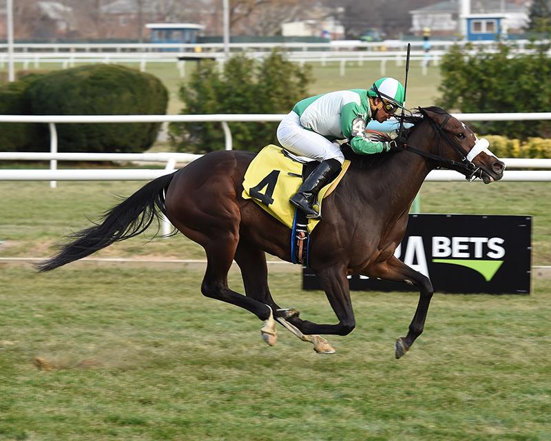 Rachel’s Blue Moon, a 2-year-old Bodemeister filly, showed tremendous late kick in her maiden special weight victory Saturday at Aqueduct, winning the six-furlong contest by nearly three lengths in her career debut.