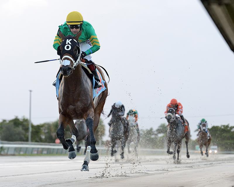 Thissmytime’s crushing victory in Sunday’s Millions Filly and Mare Turf Preview S. at Gulfstream Park not only marked the first stakes win for the 3-year-old daughter of Carpe Diem,  but also was track record- setting performance as she covered the seven furlongs in 1:21.40.