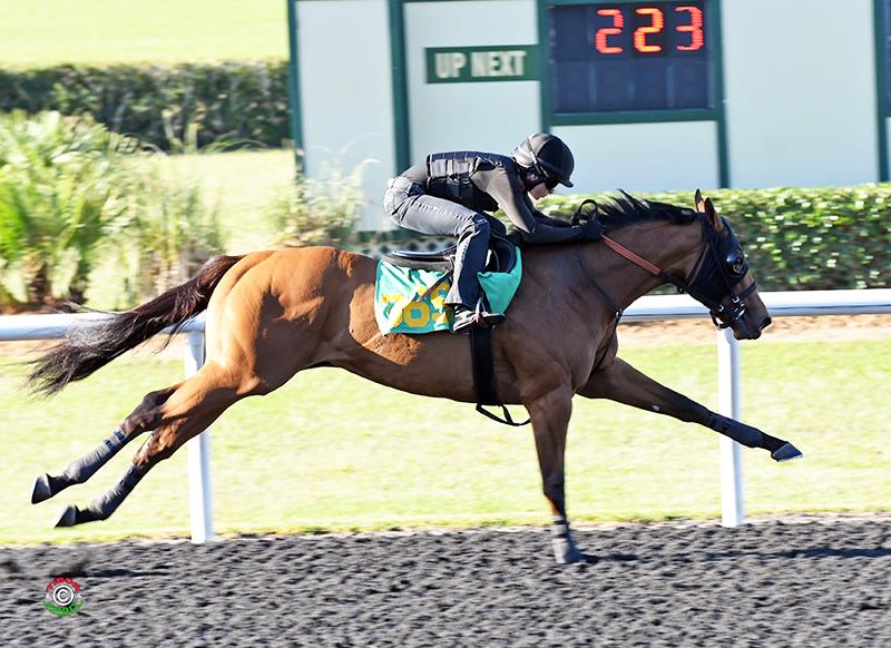A filly from the first crop of multiple graded stakes winner Commissioner worked a quarter-mile in :20 1/5 Tuesday at the Under Tack show in preparation for the April 23-26 OBS Spring Sale of 2-year-olds in Training, sharing the fastest time at the distance.