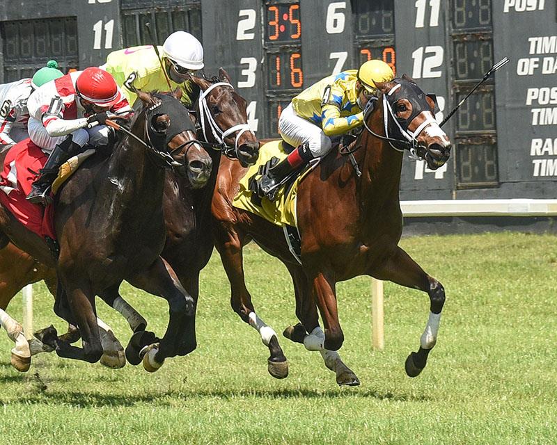 Indy Lyon led all the way in the 1 1/16-mile event, but had to withstand dramatic stretch run with Chess’s Dream and the furious late charge of Officiating. The three hit the wire on nearly even terms, with Indy Lyon a nose in front of Officiating, and Chess’s Dream a neck back in third.