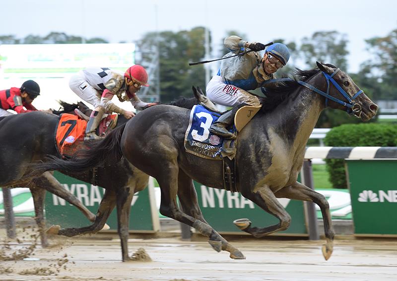 Joking’s stirring stretch run carried the son of Distorted Humor to victory in Saturday’s $350,000 Vosburgh S. (G1) at Belmont Park, his second graded victory and third stakes win overall.