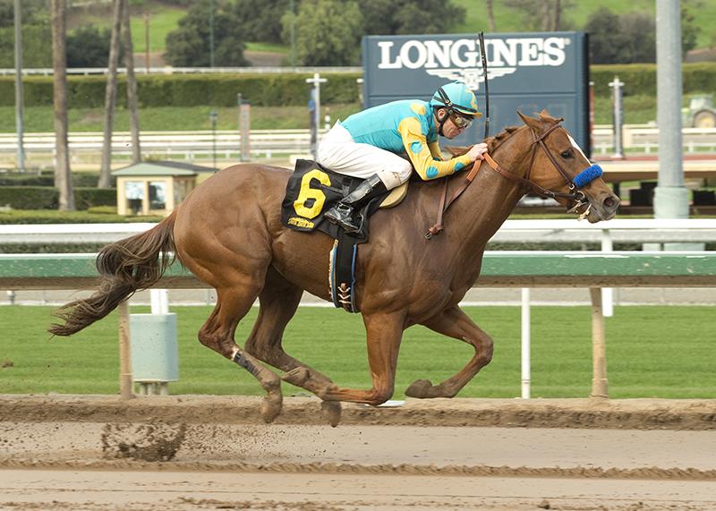 Following a solid series of workouts over the past two months, Gemologist’s Aquamarine came away a two-length maiden special weight debut winner Friday at Santa Anita Park.