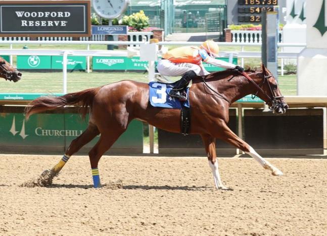 The flashy chestnut sped to the lead right at the break and led the field around the turn as she raced well off the rail. After briefly relinquishing the lead at the top of the stretch, she rallied strongly to win by 1 ½-lengths in :48.47 for the five furlongs on the fast main track.