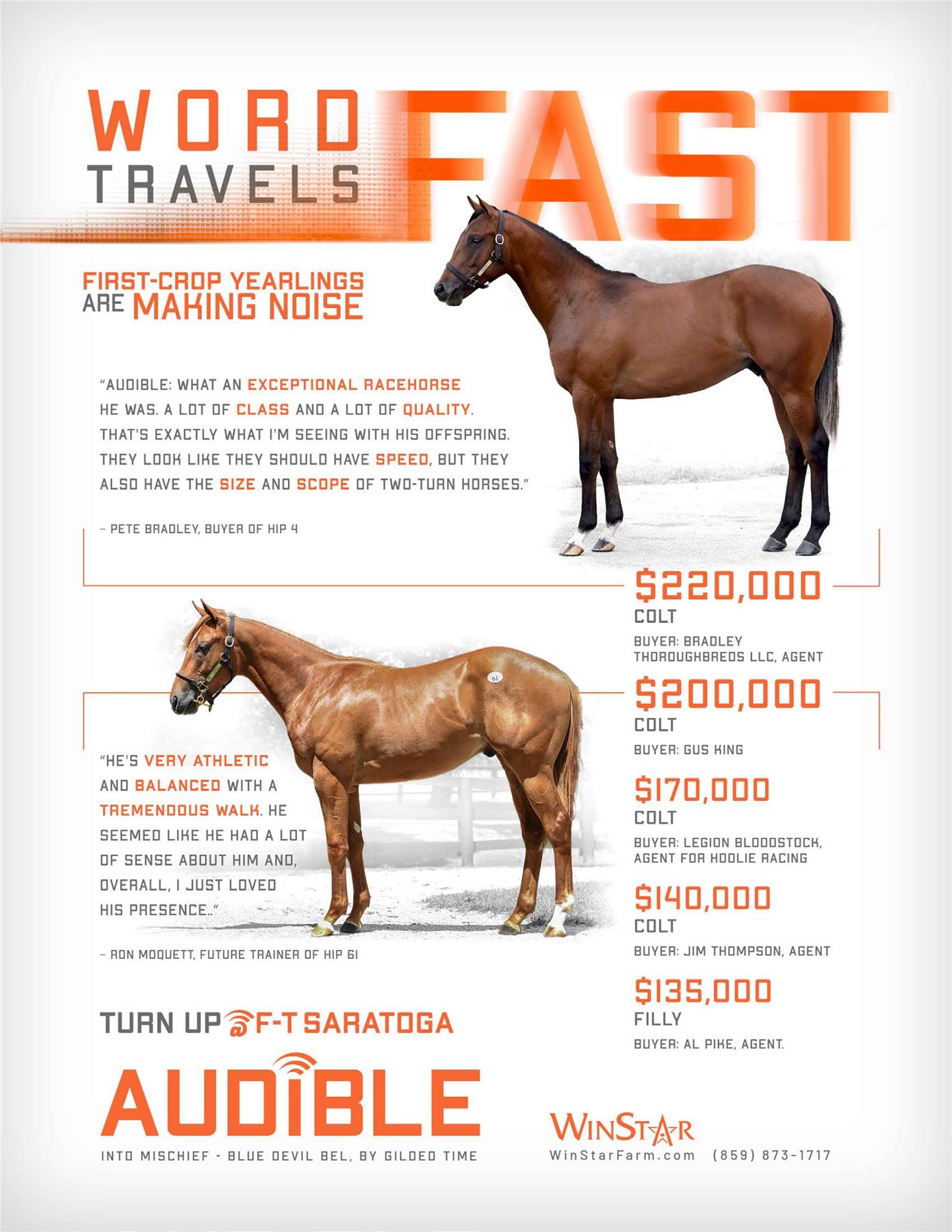 - First yearlings in 2022 sold for: $725,000, $675,000, $575,000, $390,000, $375,000, $350,000, etc.