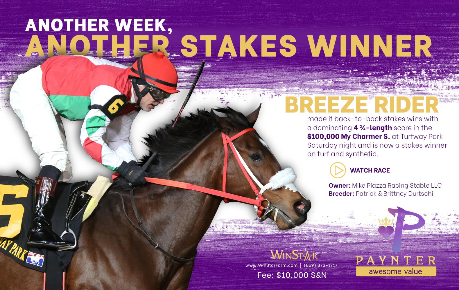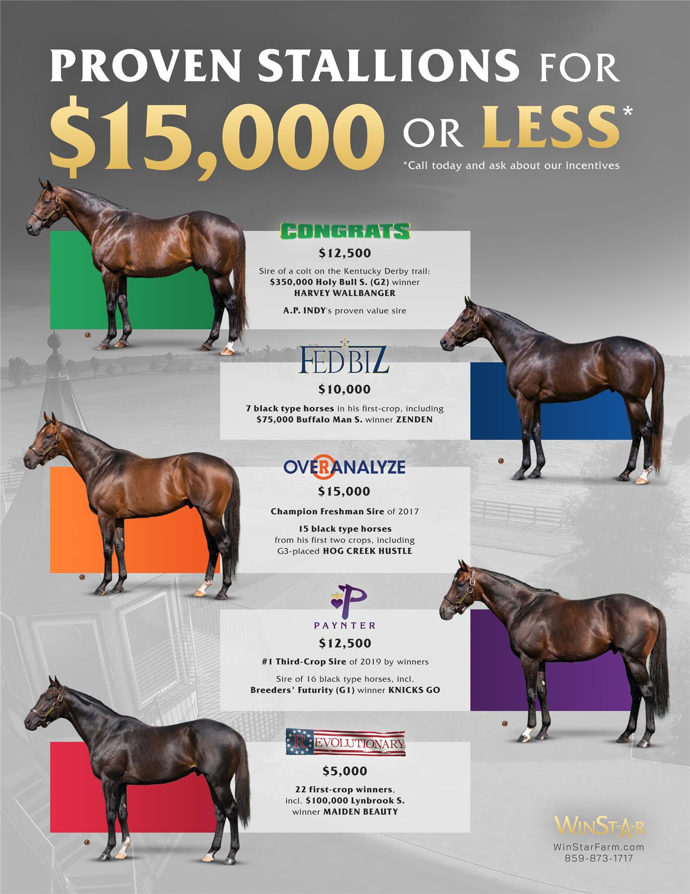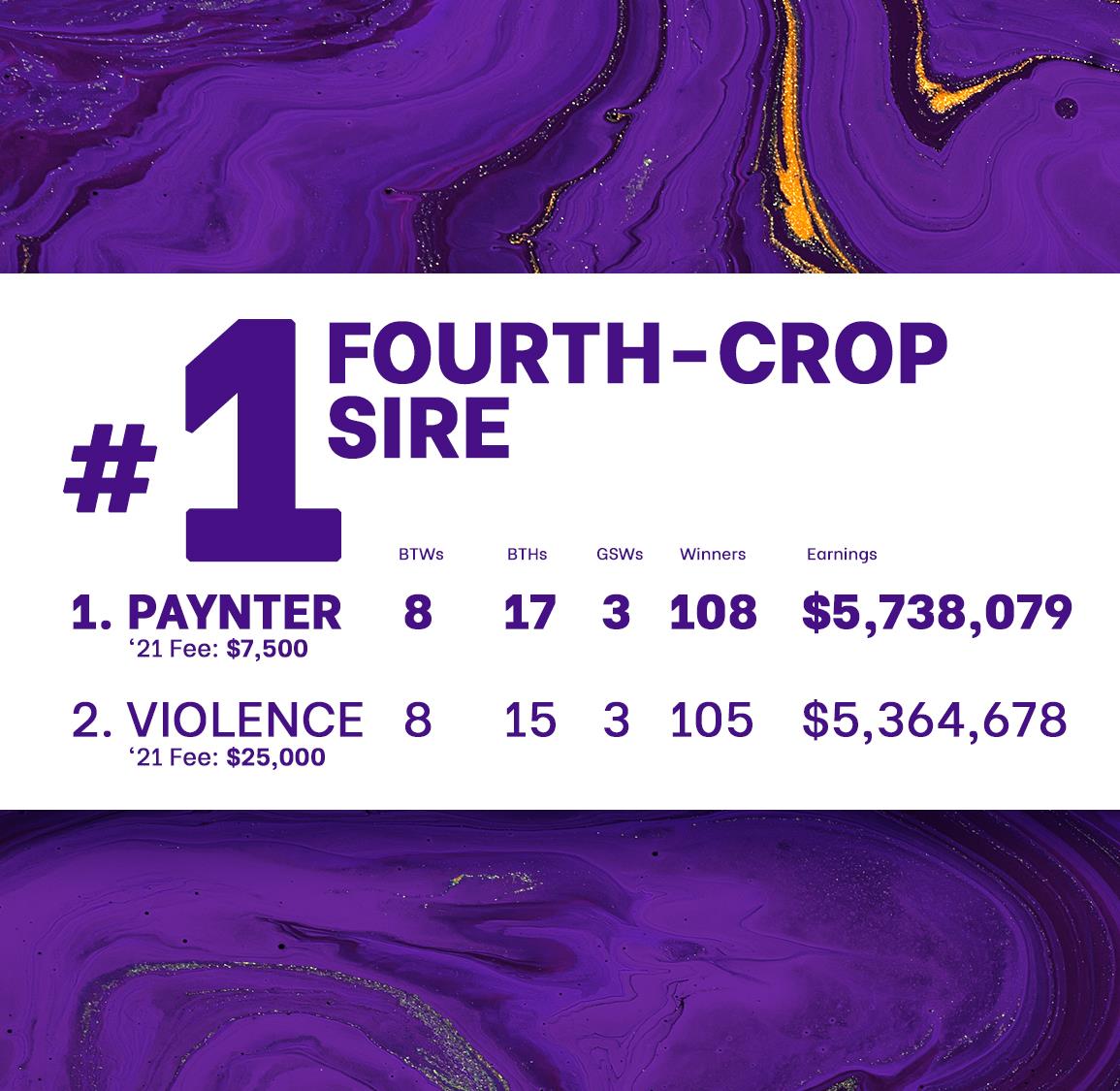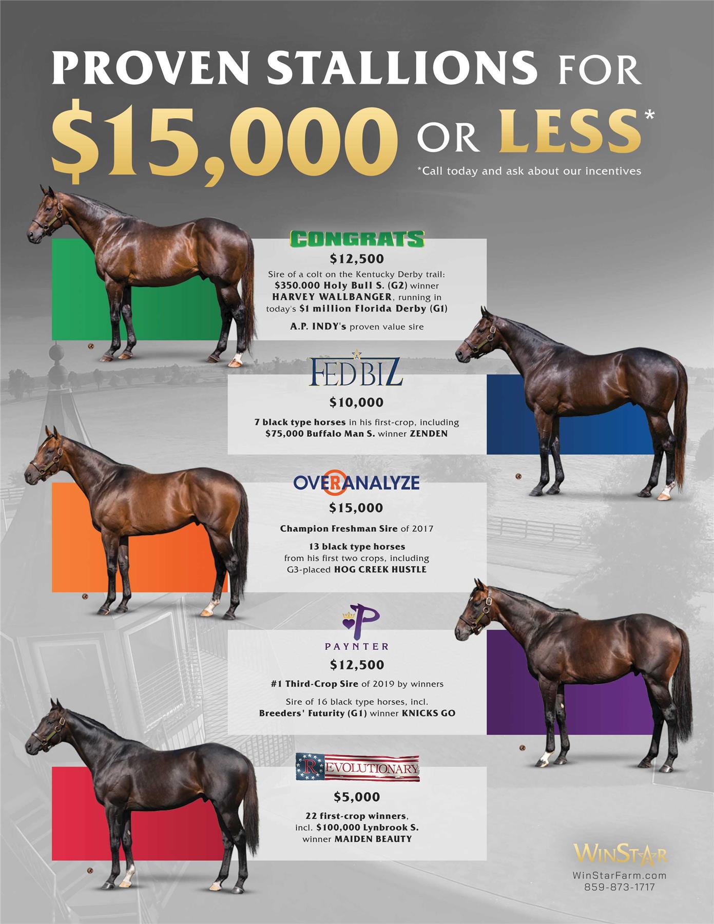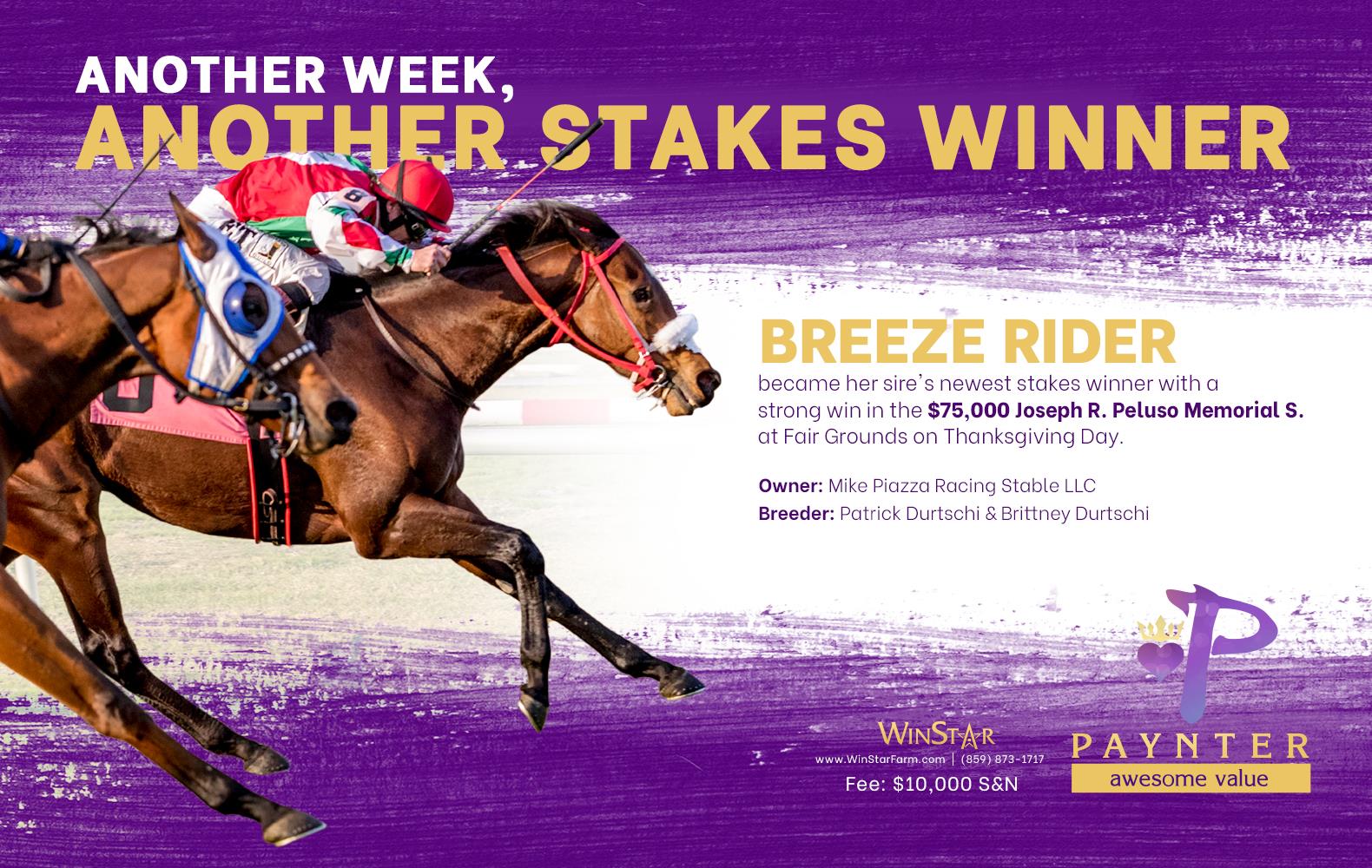 Paynter is already the sire of 23+ BTWs, including HOTY Knicks Go, who is out of a mare by Outflanker, a son of Danzig, and there are Awesome Again BTWs out of mares by Danzig sons Danehill, Dayjur, Langfuhr and Polish Numbers. From another branch of Northern Dancer, Paynter has a BTW out of a mare by Storm Cat. Outflanker is from the immediate family of A.P. Indy, and Paynter has sired GSWs out of mares by A.P. Indy sons Sauve and Mingun—A.P. Indy and sons and grandsons should be interesting here, especially Tapit. Out of Mr. Prospector line mares, he has BTWs out of mares by City Zip and his sire Carson City; Bandini, by Fusaichi Pegasus; and English Channel, by Smart Strike. There is a BTW from the sire line of Forty Niner, also the sire of Distorted Humor. From other branches of Mr. Prospector, there is a G1W on an Awesome Again cross over Gone West, making Speightstown, Elusive Quality, Mr. Greeley, and Grand Slam appealing choices. We can note Awesome Again line Classic winner Sir Winston out of a mare by Afleet Alex (by Northern Afleet). From the Fappiano branch of Mr. Prospector, Paynter has a BTW out of a mare by Quiet American and a BTW out of a mare by Unbridled’s Song. He has a GSW out of a mare by Dynaformer, a version of the successful Awesome Again cross with a Roberto line mare. Paynter has a BTW out of a mare by Holy Bull, another good cross under Awesome Again; a BTW out of a mare by Leroidesanimaux (sire of Animal Kingdom); a BTW out of a mare by Tiznow and a GSW out of a mare by his son Tiz Wonderful (both giving inbreeding to Tiznow and a sister). – Alan Porter