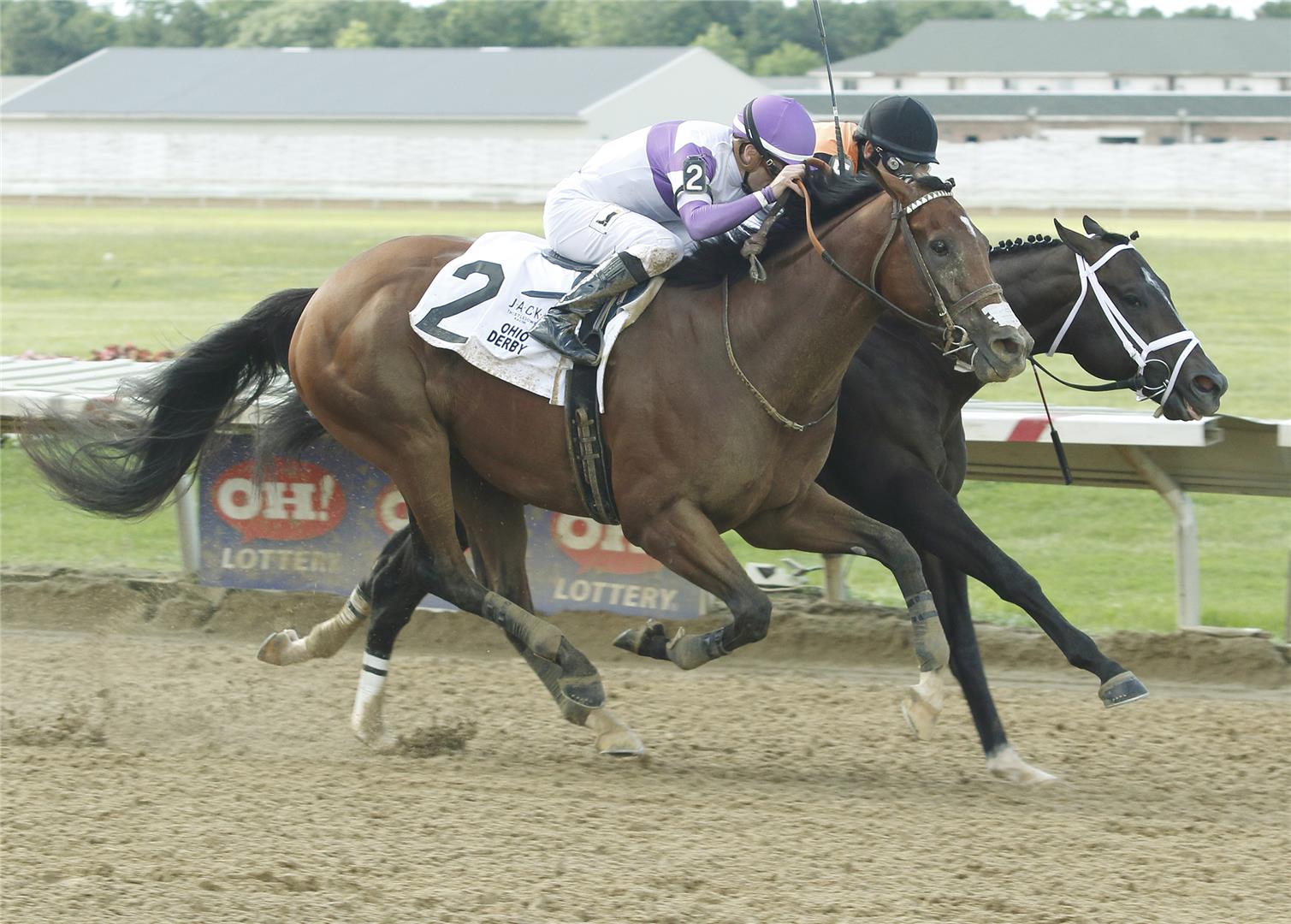 Irap became Tiznow’s eighth millionaire on Saturday when the 3-year-old colt rallied to win the $500,000 Ohio Derby (G3) by a nose over multiple graded stakes winner Girvin.