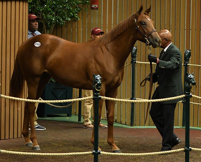 Selling for $270,000 was hip No. 899, a filly consigned by Taylor Made Sales Agency that went to BSW Bloodstock. The chestnut is from the same family as champion 2-year-old filly Halfbridled and $1.8 million earner Lu Ravi.