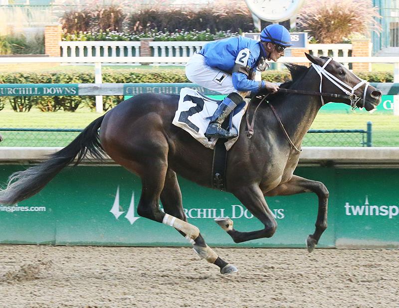 Queen Mum flew past her foes in the stretch to win her debut by a widening length and a half Thursday afternoon at Churchill Downs (VIDEO).