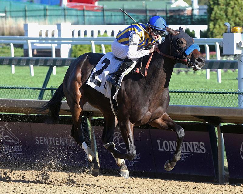 “She got a little bit of a temperature after her last race which threw the Breeders’ Cup plans out,” said trainer Bob Baffert’s assistant Jimmy Barnes. “Bob said, ‘Let’s go out there and see what happens.’ We added blinkers to get her a little bit more aggressive. She was a little laid back but they’ve shown they help.”