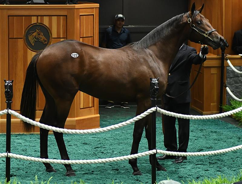 Hip No. 122 was consigned by Four Star Sales, agent and went to Gary Stevens, agent. The bay colt is the first out of Stock Yard Hen, who is a half-sister to multiple graded winner Buffalo Man.