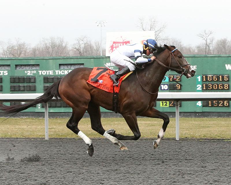 “We had a great trip sitting up there near the speed,” said winning jockey Mitchell Murrill. “That was the place to be if you go off the earlier races. You have to push him along out of the gate, sort of nudge him a little bit, but he ran great, especially down the lane.”